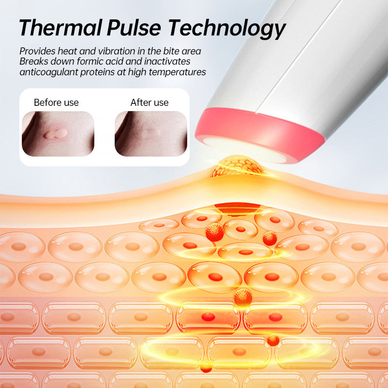 This compact tool uses pulse heat technology to warm the skin for 30 seconds, breaking down itch-inducing proteins injected by insects. The result? Immediate relief from itching, swelling, and inflammation — all without any chemicals or side effects. Just choose from 4 adjustable levels and press.